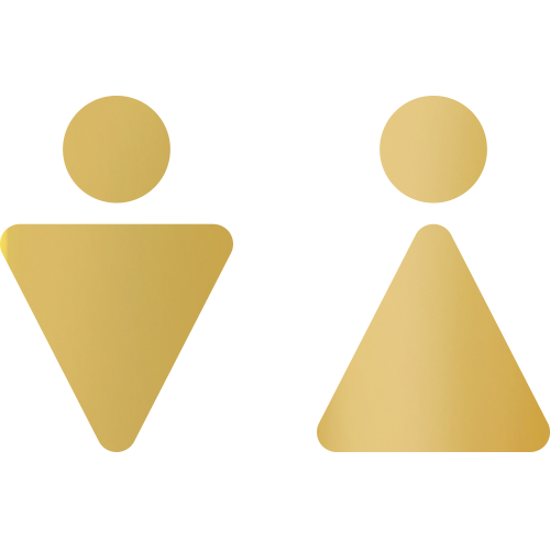Set de autocolante cu design geometric modern, realizate din forme simple si usor de recunoscut. Siluetele stilizate folosesc cercul si triunghiul pentru o identificare discreta si eleganta a toaletelor pentru barbati si femei. Potrivite pentru restaurante, baruri, hoteluri, birouri sau spatii publice cu design contemporan.