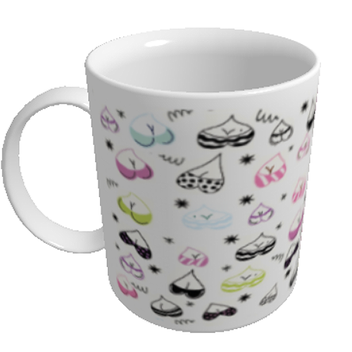 Cana cu ilustratii desenate ale bustului feminin, reprezentat in sutiene de diferite culori si marimi. E o forma de arata dragostea, pentru ca sanii sunt in forma de inima intoarsa.