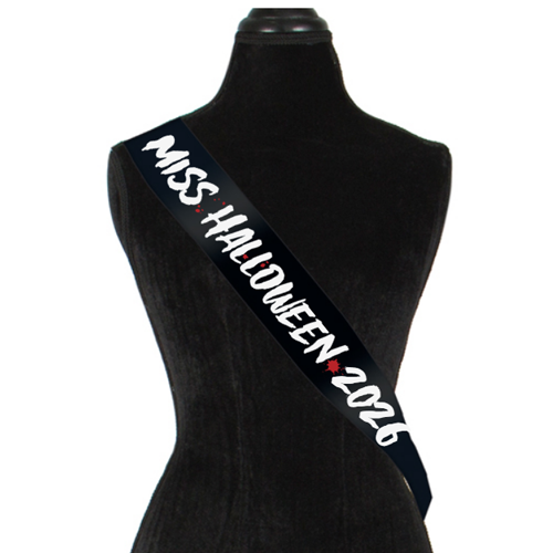Panglica pentru Miss Halloween cu un font de speriat si pete de sange.