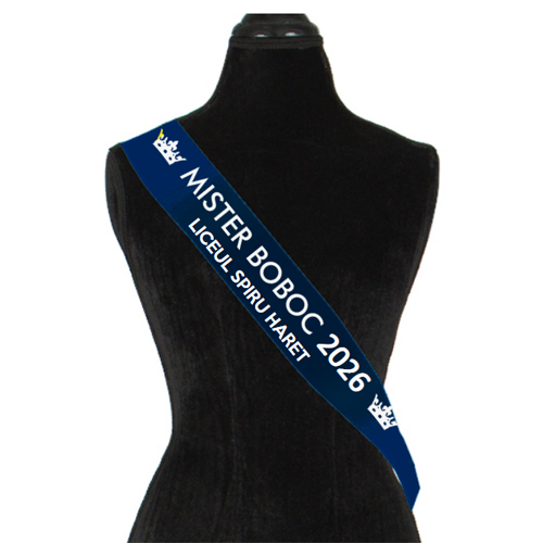 Panglica pentru Mister cu text personalizat, anul evenimentului si, optional, numele unitatii de invatamant.